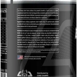 مکمل آمینو بیف کورچمپس(Amino Beef CORE CHAMPS) یک مکمل آمینو اسیدی است که از پروتئین گوشت گاو به عنوان منبع اصلی اسیدهای آمینه استفاده می‌کند. این مکمل به‌ویژه برای ورزشکارانی طراحی شده است که به دنبال رشد عضلانی، ریکاوری سریع‌تر و بهبود عملکرد ورزشی هستند. پروتئین گوشت گاو به دلیل ترکیب اسیدهای آمینه با کیفیت بالا و جذب سریع‌تر در بدن، گزینه‌ای ایده‌آل برای افزایش حجم عضلانی و بهبود فرآیند بازسازی عضلات پس از تمرینات است.